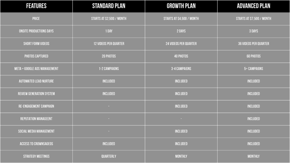Not sure which plan is right? Let’s review your goals and map the best growth system for your business.